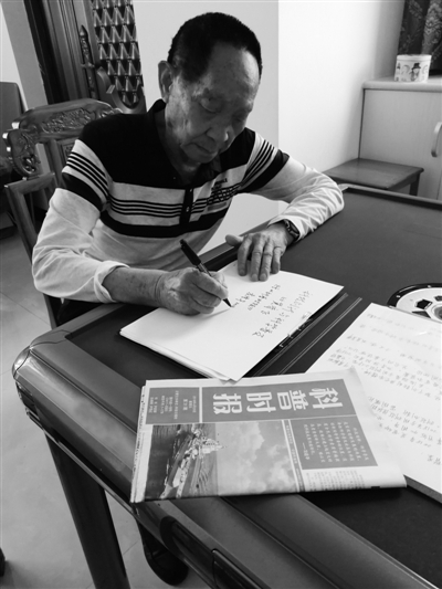 我特别把新出的一期《科普时报》呈给袁老,并请他谈谈对科普的看法。他说,科普很重要啊,老百姓借助科普了解更多的科学知识,提高文化水平,不做科盲,就不会陷于迷信,也不容易上当受骗。