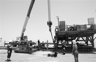 5月10日,该项目部员工抢抓生产时效,为沙特工区钻井队拆装检修井口设备。陈英杰 摄
