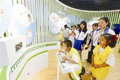 | 在湖北襄阳市爱尔眼健康科普基地,海容小学的孩子们通过科普小游戏了解眼科知识。 |