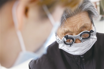 | 湖南永州,蓝山县中心医院近视门诊,医护人员正在对青少年进行免费的眼健康护理。 |