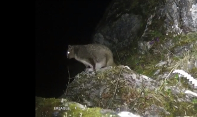 | 图1为雪山羊绒鼯鼠的生境。图2为雪山羊绒鼯鼠的粪便。图3为红外相机视频截图的雪山羊绒鼯鼠。 (图片来源中科院昆明动物研究所) |