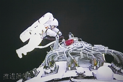 | 2008年9月27日16时50分左右,神七航天员翟志刚成功出舱。 |