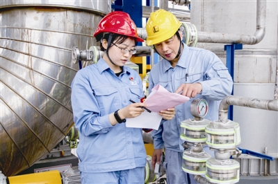 图为该厂班组技术人员现场了解雨季装置运行状况。