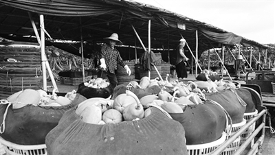 为了帮助农民掌握简单易懂的科学选肥用肥知识、实现增产增收,中海石油化学股份有限公司全程为种植户提供优质服务。图为种植户采摘木瓜后集中存放准备发运。曲均峰 摄