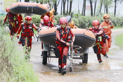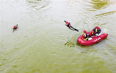 | 7月5日上午,湖南省常德市消防救援支队前置沅水抗洪力量进行舟艇集结训练。连日来,针对当地出现的雨情,前置抗洪力量在集结地开展贴近实战的水域救援大练兵,随时准备处置可能出现的各类险情。 |