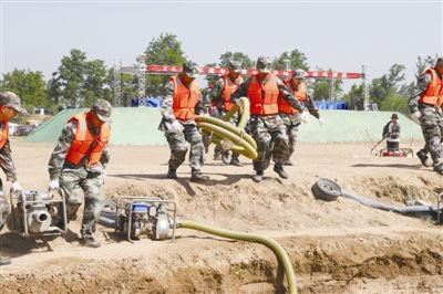 | 江苏省徐州市丰县军地联合在大沙河畔开展防汛抗洪救援应急实战演练。 |