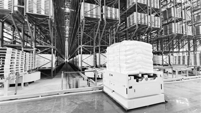 巴陵石化橡胶部年产5万吨热塑橡胶SEBS新装置智能化立体仓库,目前运行平稳。装置两条后处理生产线的SEBS成品码垛下线后,由AGV(自动导引运输车)转运至立体仓库入库输送机,再由堆垛机将码垛成品运送至立体货架进行存储,发货时堆垛机将立体货架上码垛成品提取送至出库输送机,再由RGV(有轨穿梭小车)送出仓库进行装车。彭展 摄