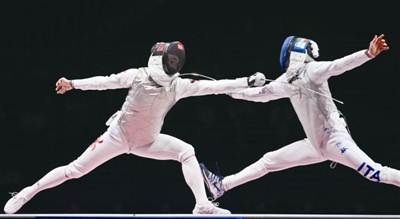 | 击剑项目男子个人花剑决赛中,中国香港运动员张家朗(左)战胜意大利选手夺得冠军。 |
