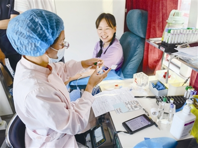 一张张鲜红的献血证,一袋袋带着体温的新鲜血液,体现着海洋钻井人的担当和奉献。在采血现场,当有的员工在得知自己因血压等身体原因无法参与献血时,都特别难过,无奈地带着遗憾离开;一名“熊猫血”志愿者刚刚献过血,记录显示两个月后才能再献,临走时还跟工作人员反复核实,确保能够第一时间再次奉献爱心。献血车内,欢声笑语,大家相互打气,缓解着紧张的心理,气氛融洽且轻松。“我这是第11次献血了,你第几次?”胜利七号平台党支部书记、副经理王强与旁边的人聊着天,脸上写满了自豪。“无偿献血不仅是每个公民的义务,更能传递一份爱心、履新一份责任。”海洋钻井公司安全总监赵忠生表示。