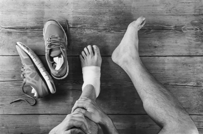 踝关节也是羽毛球运动中极易受伤的部位。由于羽毛球落点变化大,打球者需要脚下不停移动,很多人冲到网前跨步接球时,因速度太快而习惯用脚尖着地,这样的做法很容易使踝关节局部负荷过重。加上肌肉力量不足,导致踝关节韧带扭伤。姿势长期错误,还会造成踝关节创伤性滑膜炎。正确的着地方法:前跨步时脚跟外后侧最先着地,依次向前直至整个脚掌落地。落地时应尽量将脚步放轻,避免突然、猛烈地着地。最好能在木制地板的场馆里打球,运动鞋的鞋底要有一定厚度和弹性,以降低造成踝、膝等关节损伤的几率。据调查,羽毛球运动踝关节损伤的原因多达七种,而其中所占比例最大的两个是局部负荷过重和场地不良。