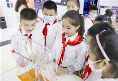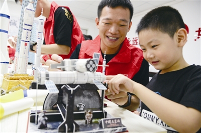| 暑假期间,不少孩子在家长的陪伴下来到中国科技馆,观看中国航天展品,体验火箭发射,培养科技创新意识,放飞航天梦。 |