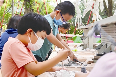 | 北京奥林匹克森林公园儿童游乐园,小朋友在老师的指导下学习恐龙考古知识,零距离体验考古的魅力。 |