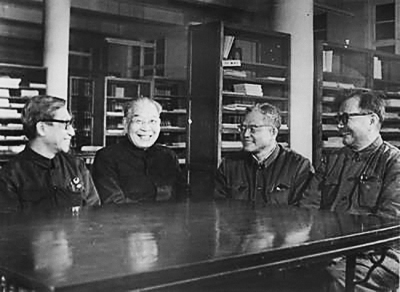 | 图1为杨承宗的两份聘书。 图片来自中国核工业 图2为杨承宗先生。 图3为一九七八年,杨承宗(右一)与严济慈、马大猷、吴文俊在一起。 图片来自共产党员网 图4为1951年约里奥·居里夫人在杨承宗(左一)博士论文通过后的庆贺会上与其碰杯。 图片来自中科院网站 |