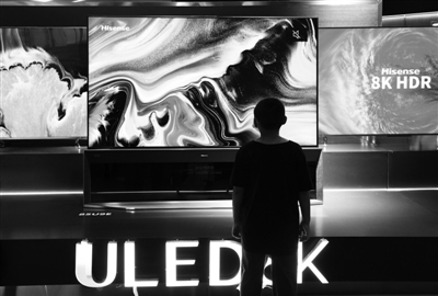 | 9月25日,小朋友在2021中国国际消费电子博览会上观看8K高清电视。 新华社记者 李紫恒 摄 |