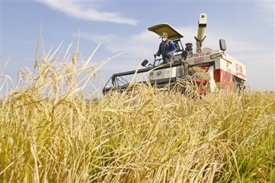 | 再生稻第二茬,不施肥、不打药、米质优,目前售价比普通稻谷高出50%,稻米供不应求。推广再生稻种植,能够充分利用光热资源,缩短农作物生长期,提高亩均粮食产量、增加种粮效益。图为位于安徽省安庆市宿松县的农垦华阳河农场农科所再生稻示范种植基地,职工在驾驶农业机械抢收再生稻第二茬。 |