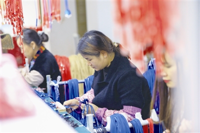 | 贵州省黔东南苗族侗族自治州从江县在巩固脱贫攻坚成果中,引导企业在劳动力相对集中的乡镇开办“乡村微工厂”,让村民在家门口获得就业,实现增收顾家两不误,助力乡村振兴。图为村民在进行数据线加工。 |