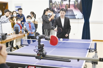 | 陪练机器人前景广阔,为亚健康人群定制“运动处方”。图为智能机器人“小丘”,和它的研制者之一、上海理工大学机器智能研究院研究院讲师季云峰对练。 |