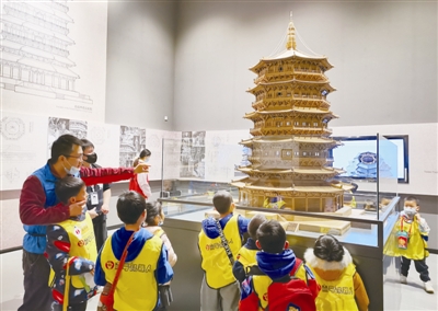 | 坐落在武汉的中国建筑科技馆,是国内首家以建筑科技为主题的展馆。该馆展现了中国传统的建筑工艺技术,及古今建筑的发展与变化。图为家长和孩子正在参观。 |