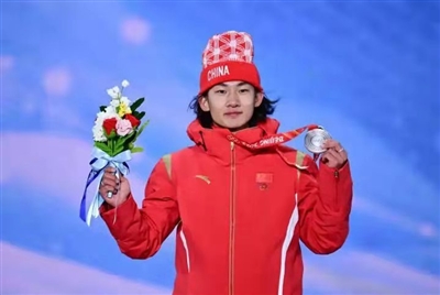 | 2月7日,亚军中国选手苏翊鸣在奖牌颁发仪式上。新华社发 |