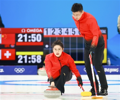 2月2日,北京冬奥冰壶混双循环赛首轮在国家游泳中心进行,中国组合范苏圆/凌智击败瑞士组合,为中国代表团赢得冬奥首胜。