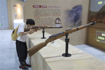 | 在2021年6月举办的“科创百年——建党100周年科技成就科普展”上,小朋友在体验抗战时期生产的“八一式马步枪”。(视觉中国供图) |