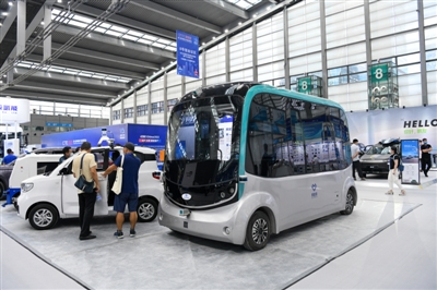 上图为观众在第十届中国电子信息博览会上了解自动驾驶汽车。