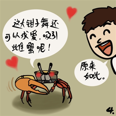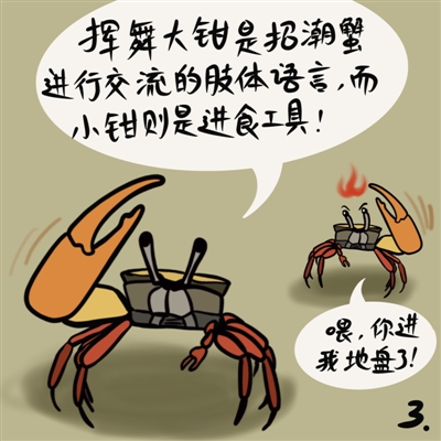 雌蟹的两螯都相当小,而且对称,指节匙形,均为取食螯。