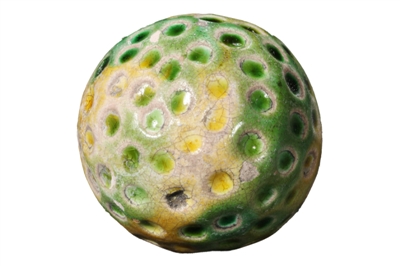 “我们馆藏的1000多枚捶丸,多出土于平顶山市鲁山县的段店窑遗址、宝丰县的清凉寺窑遗址和汝州的临汝窑遗址。”梅国建说,“捶丸用球大小不一,多数直径约为5厘米。材质有陶制和瓷制之分,均为实心,烧结致密,弹跳性极佳。有的表面以圆圈纹、花卉纹、旋涡纹等装饰,还有的运用了绞胎、绞釉等特殊装饰工艺。其中,以坑点纹装饰的陶瓷球与现代高尔夫球外形惊人相似。”