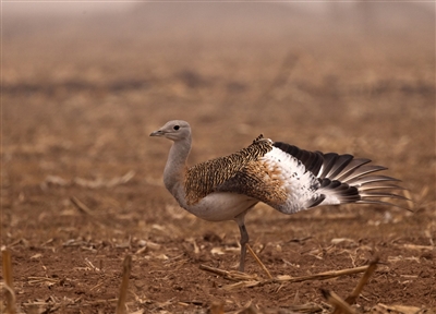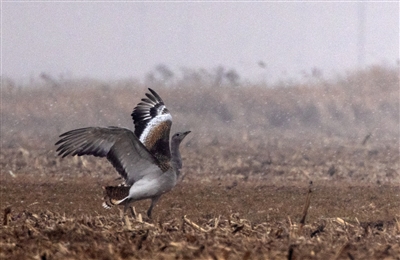 大鸨属于极度濒危鸟种,为国家一级重点保护野生动物,是鹤形目鸨科大型地栖鸟类。雄性体长可达1米,重达10公斤左右,是世界上最重的飞鸟。