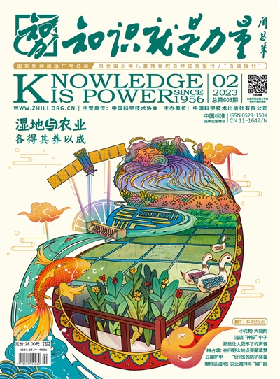 湿地,被称为“地球之肾”“物种基因库”“储碳库”。它不仅调节净化着地球上的各类水体,守护滋养着世间万千生灵,还为农业发展带来了多样天地。2023年第2期《知识就是力量》杂志,带领读者朋友踏进这片神奇大地,感受自然与人类的智慧力量。在未来,大家会随鱼儿钻入不一样的水稻田,合力扭动污水净化的阀门,把水患变成“水利”;带着睡莲种子登上千年梯田,用遥感与水鸟一起俯瞰家园,寻找甲烷菌的踪迹……