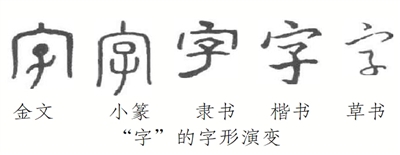 最后说说“字”。“字”是由“宀”和“子”两部分组成的。“宀”表示房屋,“子”表示在襁褓中的孩子,所以“字”本来表示“生孩子”的意思。后来在这个基础上又发展出“出嫁”,如“待字闺中”;“文字”,如“字典”等意义。“文”和“字”本来是有区别的:“独体为文,合体为字”。因为“文”本来是独体字,所以用“文”表示“独体字”的含义;“字”是合体字,所以用“字”表示“合体字”的含义。后来对“文”和“字”不再进行单独区分,而是用“文字”的名称涵盖所有的独体字和合体字。