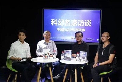 | 王晋康(左二起)、刘慈欣、超侠参加《科幻名家访谈录》节目。 |