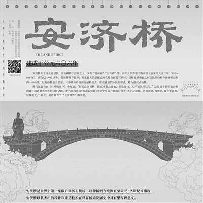 赵州桥建于隋开皇十五年至大业二年间(公元595—606年),桥的主要设计者李春是一位杰出的工匠,在桥头的碑文里刻着他的名字。因桥体全部用石料建成,俗称“大石桥”。当年没有钢筋水泥,大石料都用腰铁连接。腰铁又名铁蝴蝶,至今保存完好,仍起着连接作用。当前,采用现代技术制造的钢筋水泥大桥寿命尚不足百年,用铁束腰加固的石桥竟然能挺立千年!故有中国广播电视社会组织联合会学术委员会张君赞曰:“天工落石赵州桥,飞拱腾空恃铁腰。北上燕幽成大道,隋唐赶马看洨潮。”