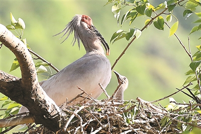 图1为在陕西铜川野外放归的朱鹮和当年出生的幼鸟。(石铜钢 摄)