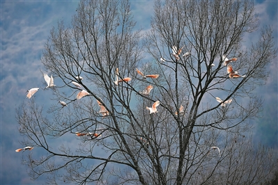 图2为成群飞舞的朱鹮。(赵纳勋 摄)
