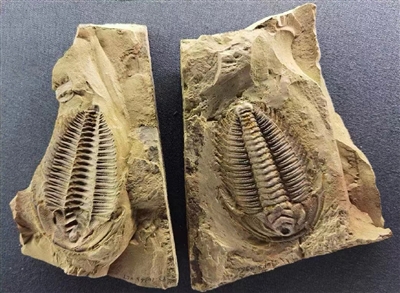 在化石精品展厅的一个展柜里,我们看到了另外的两种“层面”——丘疹关杨虫化石的两个切面。那是一分为二剖开形成的,两者完全能够对称地合上。这是一种距今5.18亿年、生活在寒武纪早期的节肢动物三叶虫的化石(发掘于云南澄江)。