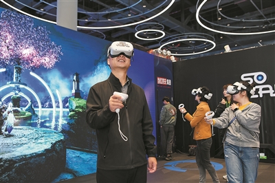 | 观众在2023成都世界科幻大会主题展览上体验VR游戏。 新华社记者 唐文豪 摄 |