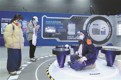 11月7日,中国科技馆主办的“音乐秘境——沉浸式音乐科技体验展”正式对公众开放,通过10余个沉浸式空间,以及46件互动展品和艺术装置,让观众深入了解音乐背后的科学知识,探索音乐对人的心理及大脑的影响,引导观众在全方位、多感官的体验中感受音乐与科技的融合之美。