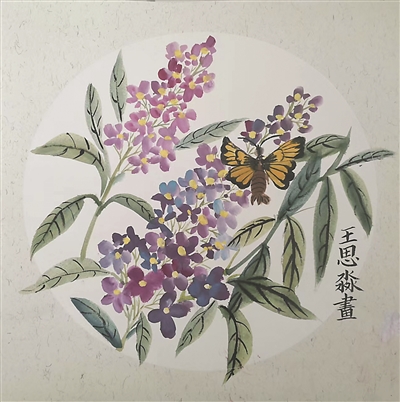 | 左图为孩子们正在观察毛白杨。赵文娟 摄 右图为黑长喙天蛾与密蒙花。王思淼 画 |