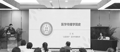 | “达医晓护”团队负责人王韬在学术会议上介绍医学传播学发展情况。 |