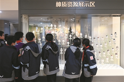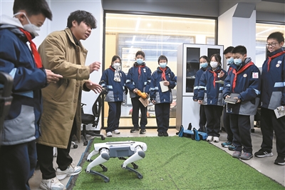 图1为学生在杭州植物园的植物资源馆观摩濒危珍稀植物标本;图2为学生在杭州植物园的植物资源馆观摩种质资源展示区;图3为学生在石虎山机器人创新基地体验操控四足仿生机械狗。新华社记者 黄宗治 摄