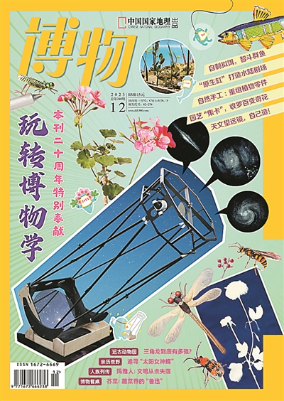 自2003年12月至今,《博物》杂志走过了20年,见证了博物学概念逐渐深入人心,也欣喜地看到有越来越多的人成为同好,享受着博览天地万物的乐趣。20周年之际,2023年第12期《博物》为新老读者奉上轻松有趣的内容:寻找“博物玩家”,看看博物学能怎么玩、有多好玩,看看从兴趣爱好中获得滋养,生命会有多精彩。
