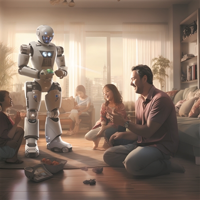 | 机器人与人类和谐相处。 (阿缺用AI绘制) |