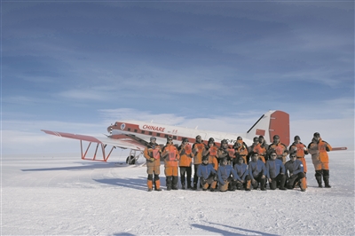 2月8日,正在南极执行考察任务的中国南极第40次考察队固定翼飞机队,在我国首架极地固定翼飞机“雪鹰601”前列队合影,并为《科普时报》读者送出祝福。