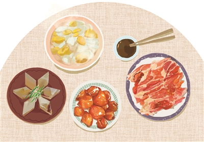 | 水晶脍 金玉羹 蜜煎金橘 拨霞供 韩雪明 绘 |