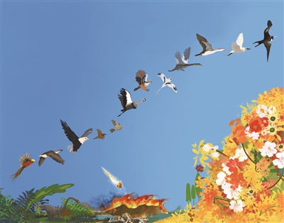研究表明,现代鸟类更像是经历长期缓慢而连续的演化,在自然选择导向下逐渐适应环境变化,并与被子植物、哺乳动物等协同演化而来。