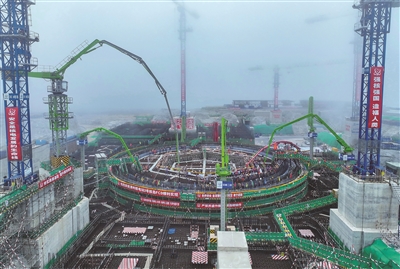 | 中核集团漳州核电二期工程“华龙一号”3号机组开工建设,标志着漳州核电二期工程建设序幕全面拉开。图为3号机组浇灌核岛第一罐混凝土浇筑现场。 新华社发(中核集团中核二四公司供图) |