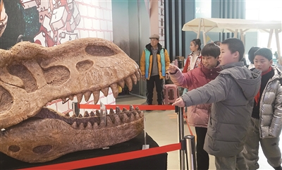 | 小朋友们在科普展上看恐龙标本。(作者供图) |