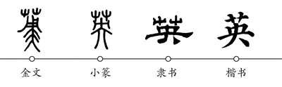 “蒲公英”的“英”,是个形声字,上面是草字头,表示和植物有关;下面的“央”代表读音,也有中央的意思。一株植物的中央,是被叶子簇拥的花。“英”的本义就是“花”,“落英缤纷”其实就是落花缤纷。还有个成语叫“百卉含英”,意思是各种各样的草都含着花朵,形容春天百花争妍的美景。在古人看来,花是植物的精华,所以“英”引申为精华,又引申为才能出众的人,比如“群英荟萃”就是许多有才华的人聚在一起。