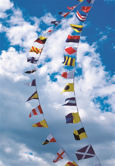 此外,通信旗的形状也不相同,其中数字旗为三角形旗,字母旗中有方形旗和燕尾旗,答应旗与国际答应旗为梯形旗。